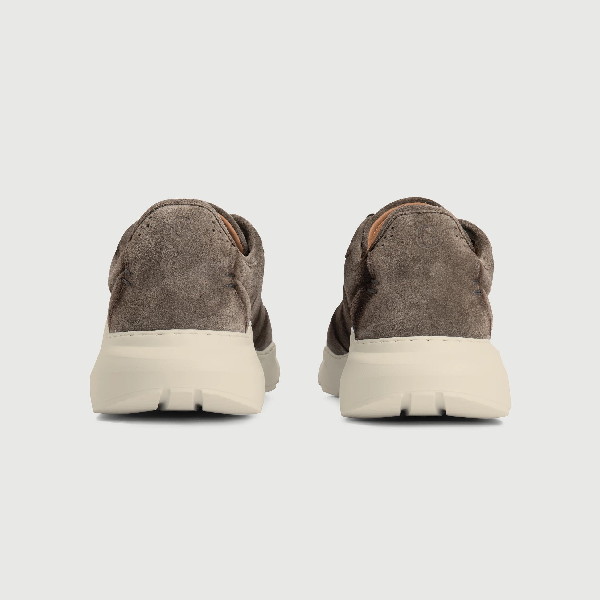 Meet the Manhattan City Runner in Mineral Taupe Suede—crafted for the rhythm of city life with a hand-applied finish that makes each pair unique. The artisanal airbrushed effect along seams and stitch lines adds depth, contrast, and character, drawing from traditional leather craft and the natural fade of well-worn favorites. Lightweight, cushioned, and built to keep pace with every step, it’s city-ready with an edge all its own. In the city that never slows down, 10k steps never looked so good.